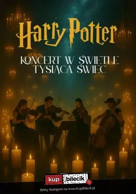 "Przeżyj muzyczną magię w blasku świec, gdzie dźwięki czarów ożywają na nowo.". Zapraszamy na niezwykły wieczór pełen magii, emocji i muzycznych uniesień - "Koncert w Świetle Tysiąca Świec", inspirowany niezapomnianą ścieżką dźwiękową z filmowej sagi o Harrym Potterze.